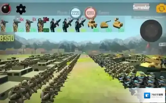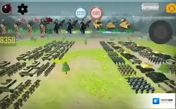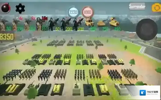 1、实时战术指挥系统:战斗中可实时调整部队行军路线,手动指挥坦克绕后攻击敌方补给线、轰炸机对集群目标进行地毯式轰炸,精准操作影响战局走向。