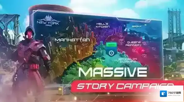 1、暗黑风格场景塑造:采用赛博朋克与废土美学结合的美术风格,锈蚀的金属堡垒、闪烁的霓虹屏障、变异的生化植被细节丰富,搭配动态光影营造压迫感十足的战场环境。