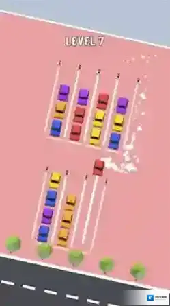 2、停车场颜色分拣任务:停车场停放着多种颜色的汽车,玩家需通过移动车辆完成颜色统一的停放目标,在混乱的停车场景中梳理秩序,感受分类整理的成就感。