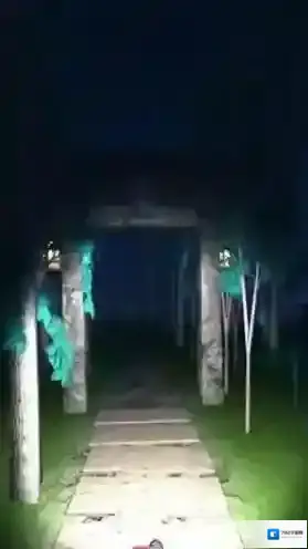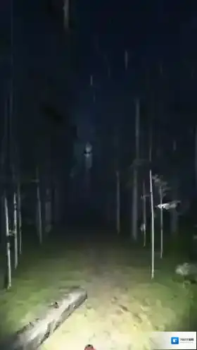 1、在雨夜森林场景中,沿箭头方向前进,借助手电筒照明,注意避开路面障碍。