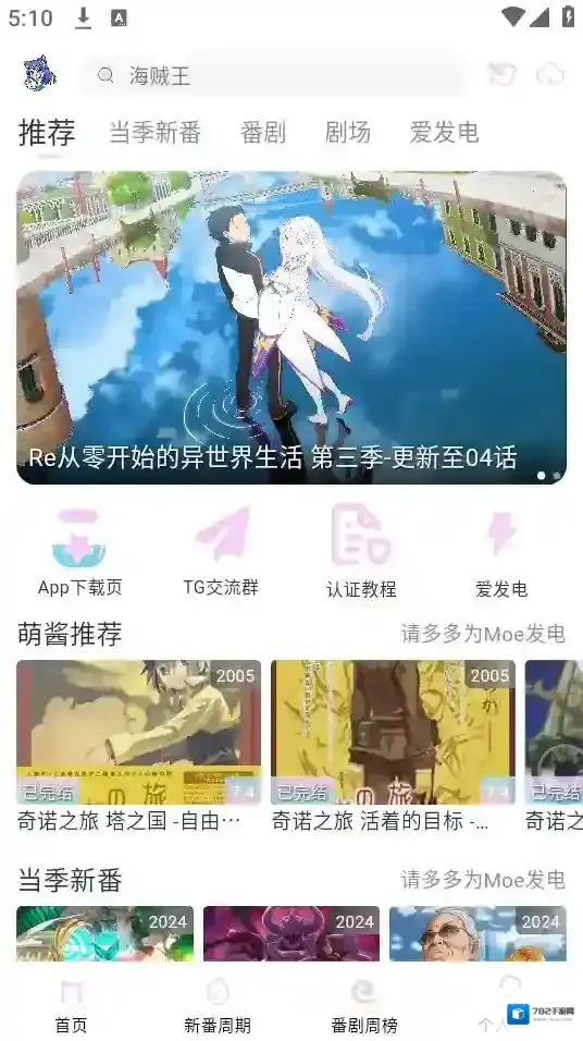 1、首页为大家推荐了很多不同类型的动漫,当季新番、番剧以及剧场等。