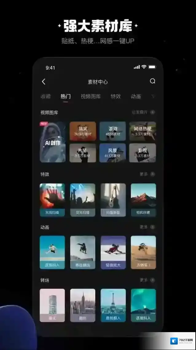 3、丰富的音乐库、音效库和新式封面,让你在手机上就能轻松完成视频编辑。