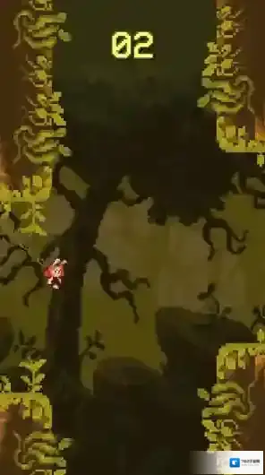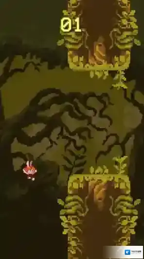 1、玩家需控制兔子在丛林中通过点击屏幕进行攀爬、跳跃,灵活利用树藤躲避障碍,完成冒险旅程。