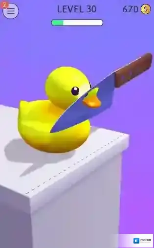 2、关卡中我们点击屏幕即可让刀落下,切割面前的物品。