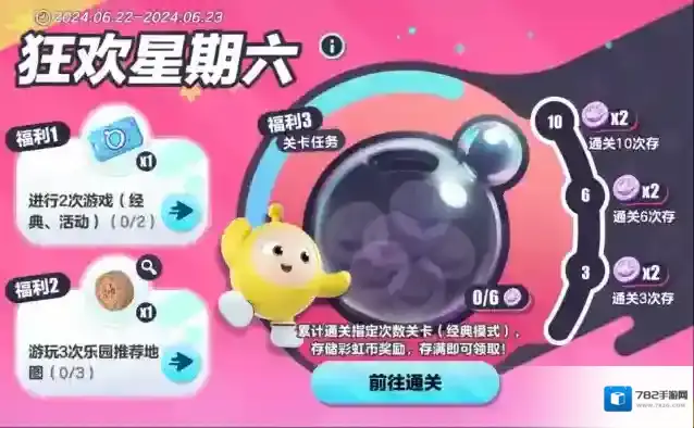 6月22日-6月23日狂欢星期六如约而至完成任务即可免费获得配饰 象棋 彩虹币*6和巅峰派对保护卡*1