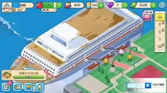 6、不断获胜更多的金币来修复游轮的其他区域,吸引更多的顾客来打造最棒的豪华游轮。