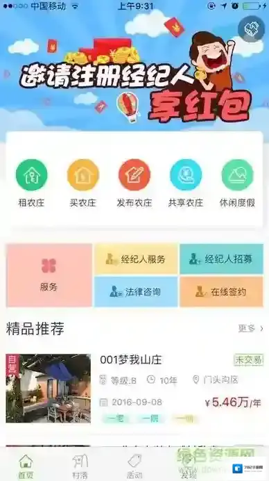 北京共享农庄庄家客户端是一款提供农场服务的软件。面向用户提供了丰富的农副产品采购以及休闲度假服务。用户可以通过手机搜索满意的农场,预订需要的服务项目!打造最绿色健康的生态农业服务平台!欢迎在梦马下载库下载。