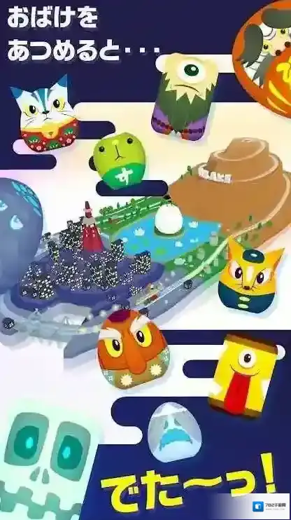 3、在场景互动界面,按照“おはけを-あつめると(收集妖怪)”的提示,点击箭头指向的区域,收集妖怪等元素,触发“でた~ん!(出现啦!)”的效果,推进游戏进程。