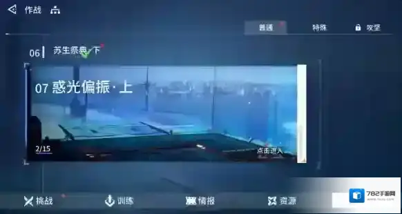 1、进入游戏大厅后,点击作战就可以进入游戏章节选择了。