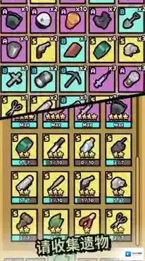 3、进入遗物收集界面,按提示“请收集遗物”,浏览各类遗物(武器、工具等),筛选适配自身角色或玩法的遗物,装备后提升战力、解锁新技能,通过战斗、探索获取更多遗物。