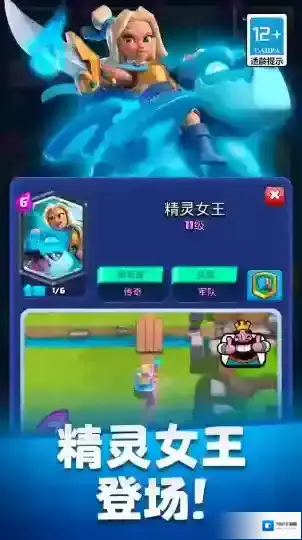 2、全新传奇卡:精灵女王加入竞技场一一地面作战或冲向云霄。一张卡牌,两种形态。