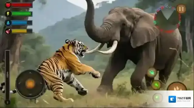 1、真实模拟野生动物生存法则,体验丛林弱肉强食的生存挑战。通过观察学习老虎的捕猎习性,掌握潜伏突袭等专业技巧,感受食物链顶端的生存压力。