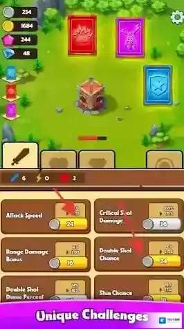 1、强化属性提升伤害:可通过强化属性对敌人造成更多伤害,属性的提升是永久生效的,玩家能根据战斗需求自由增加,这种持续成长的设定让塔的防御能力不断增强。