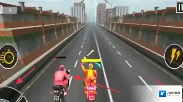 1、基础驾驶操作:通过虚拟摇杆控制摩托车方向,配合屏幕按钮实现加速、刹车与特技动作,在车流中穿梭时需保持警觉,避免碰撞。