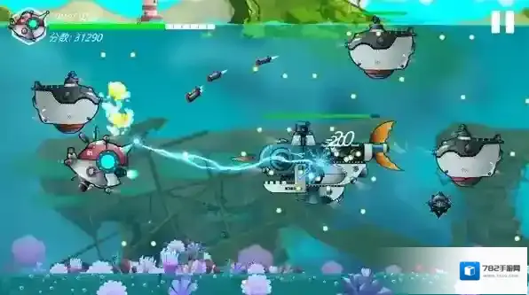 1、双摇杆配合战斗:左手滑动左摇杆控制潜艇在海底移动,躲避敌人弹幕与障碍物,右手滑动右摇杆瞄准敌人射击,通过灵活走位与精准射击消灭关卡内所有敌人,完成战斗目标。