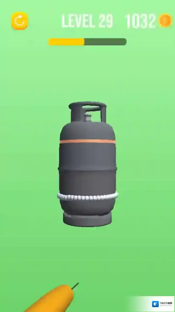 1、使用黄色工具对准容器上的橙色线条处操作,去除外层,为喷漆做准备。
