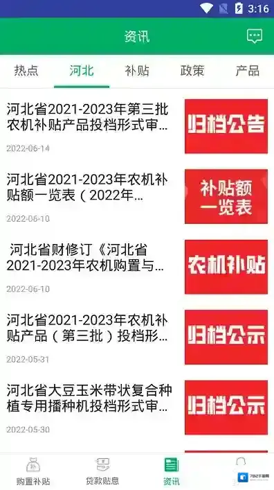 在资讯页面中,我们可以看到河北的热点、补贴、政策等等最新消息;
