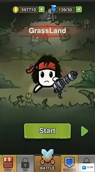2、每关收集金币和材料,把初始水枪改装成冒着蓝火的加特林。