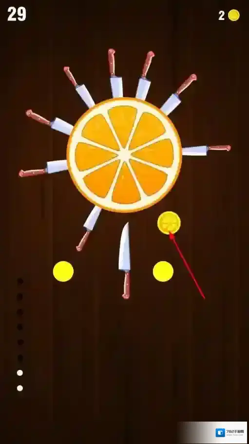 1、进入关卡后,观察旋转水果的轨迹,点击屏幕发射飞刀,瞄准水果空白区域插入,避免与已有飞刀碰撞,单次插入多刀可触发“连击加分”。