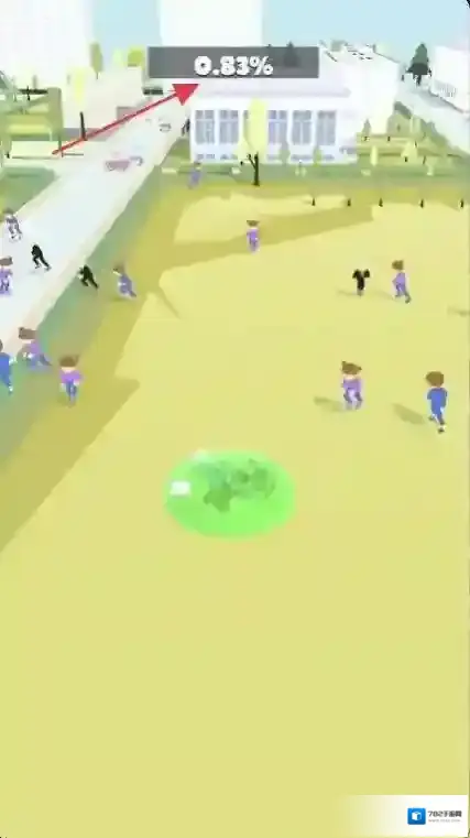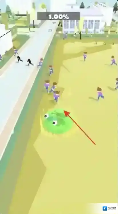 2、绿色球体碰撞人群后可将其吞噬,上方百分比数值随之增加,代表吞噬进度或积累资源。
