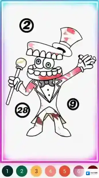 2、多模式填色体验,故事模式跟随剧情解锁新图案,自由模式随心创作,挑战模式在限定时间内完成任务。特殊活动如”午夜马戏团”推出暗色系主题挑战。