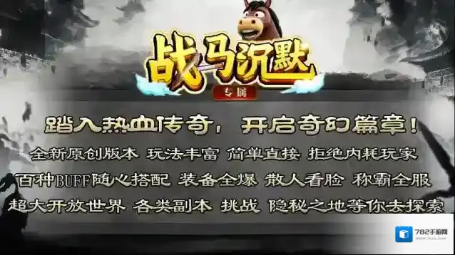 战马沉默,185二合一微变单职业沉默版本,全新原创玩法,内容丰富,百种BUFF随心搭配,装备全爆!本服拥有超大开放世界等你去探索,各类副本、挑战和隐秘之地将会带给你无限的冒险激情!更有特色奇遇功能等你体验,挑战BOSS、奇迹商人、击杀普通怪都有机会触发各自的独特奇遇,奇遇内容丰富多样,奖励更是无比丰厚,一块要把握住!游戏内时间就是一切,散人看脸,花时间一样能够逆袭,称霸全服!