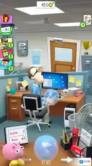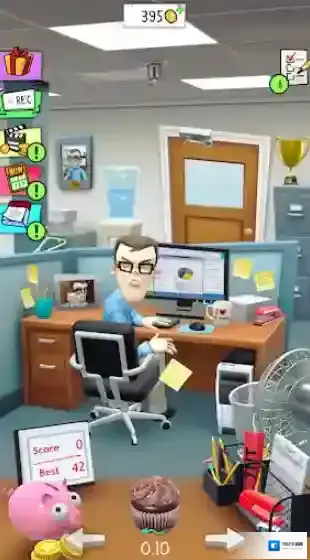 办公室捣蛋鬼(Office Jerk),一款可以带给你轻松解压体验的恶搞手游。在游戏中,我们将会来到一间办公室当中,看着对面呆呆的员工,你心中升起了恶搞他的想法,随后就开始行动!我们可以从物品栏中找到各种物品,用这些物品扔那名员工,看看他的各种反应。例如用纸团砸中他之后,它就会红温,并拿起纸团反击!又或者我们用蛋糕去扔他,把他的桌面搞得一团糟,这时候他就会拿起蛋糕砸我们,糊的你满屏幕都是蛋糕!