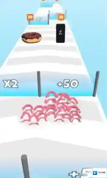 1、精准走位技巧:提前预判障碍物运动轨迹,通过连续滑动屏幕实现快速变向,在狭窄的安全区域中穿梭,保证收集牙齿与躲避障碍两不误。