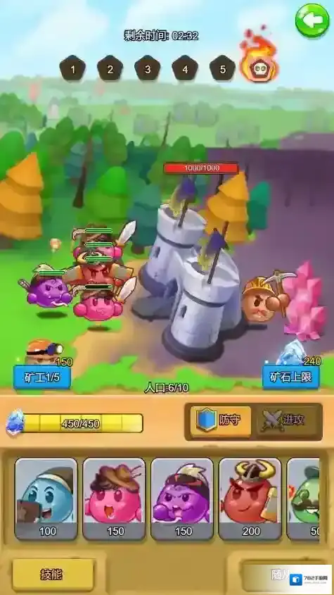 2、闯关收集资源升级:带领团子团队挑战不同关卡,击败敌人获取资源,将资源投入城堡修建与团子培养,升级城堡防御设施提升整体防御值,强化团子等级与技能增强战斗实力。