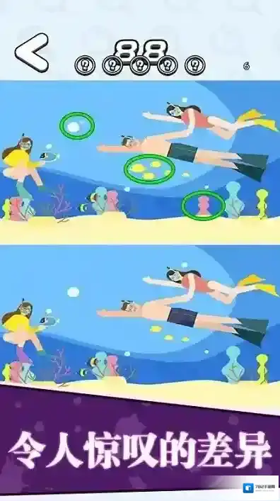 1、操作方式简单直观,点击标记差异位置,双指缩放查看细节,滑动切换对比区域。误点惩罚机制防止盲目猜测,培养真正观察力。