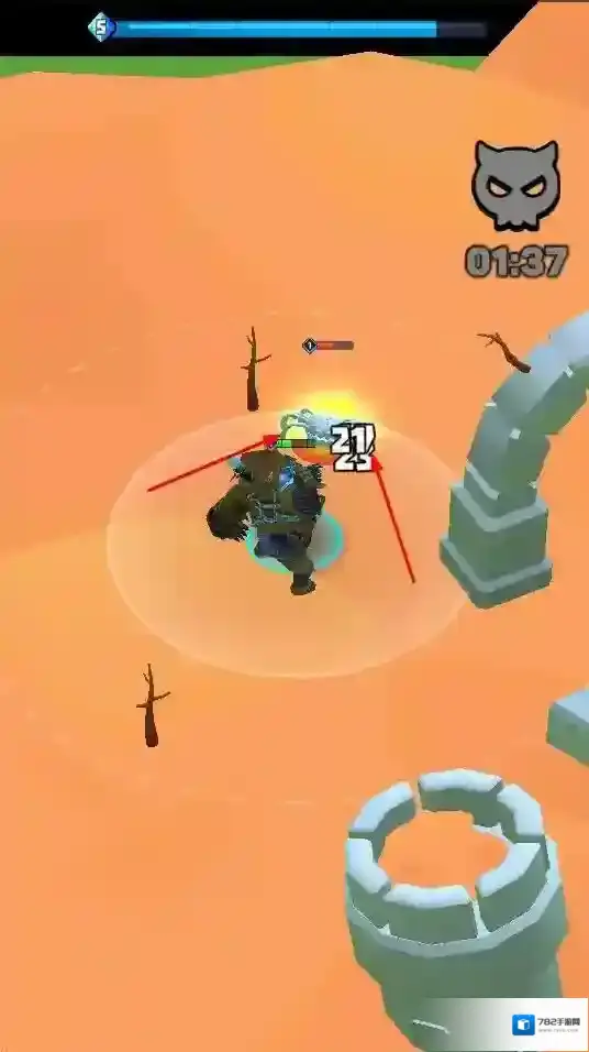 3、“猎杀怪物”,利用技能和武器,攻击并消灭怪物,完成关卡,获取奖励升级。