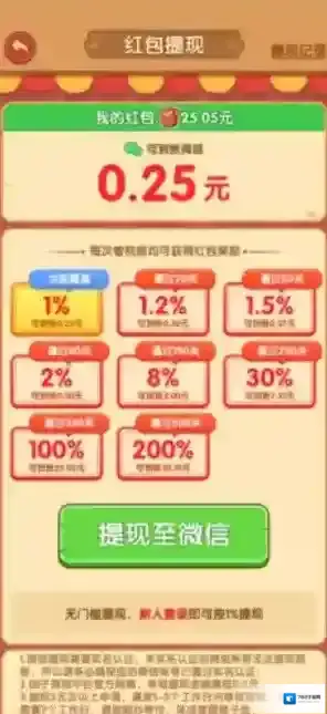 3、设置红包奖励机制,每日登录、完成关卡、达成成就等均可获得现金红包,累计满0.3元即可提现至微信零钱。红包金额随游戏进度逐步提升,最高可达100%提现比例。