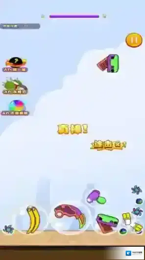 2、无尽挑战模式,水果会持续加速下落。比拼谁能坚持最久,创造最高分数记录,登上全球排行榜。