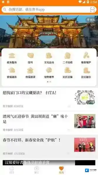 锦绣青羊app专为青羊人打造的生活服务软件,在这你可以同城交友,了解身边的大小事给你生活娱乐的资讯,视频等方式可以来展现自己,同城求助等非常的方便不仅仅是给你新闻热点等相关的资讯推送非常的实用,快来下载吧!