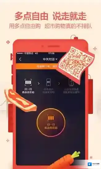 逛超市用多点智能购(自由购、自助收银机、智能购物车)体验购物新方式,最快3秒买单不排队。