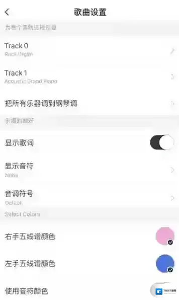 可以根据自己的喜好,设置软件播放乐器、乐谱展示、音符颜色、高低音谱显示,歌词显示等等
