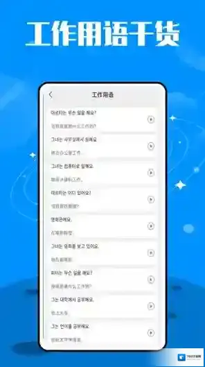 1、韩语单词大师内含适用于工作场景以及日常场景的对话教学,敬语和平语,长句和短句,均有男声和女声两版的教学带读,让你轻松的区分正式场景与非正式场景的表达形式;