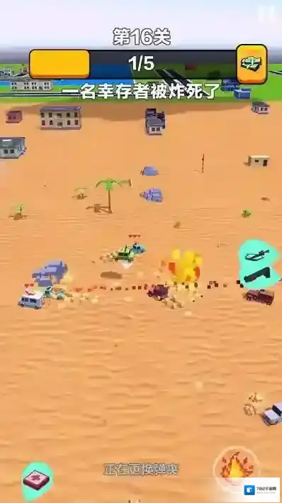 3、关卡推进第2关,操控汽车在道路战斗,消灭敌人如其他车辆,完成0/3目标,注意躲避爆炸,保护幸存者,推进关卡。