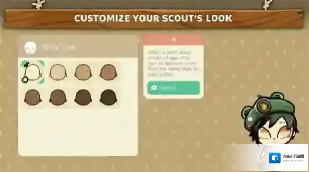 2、进入界面,在“BodyShop”中挑选角色肤色等外观选项,点击“Select”确定,定制侦察员外观。