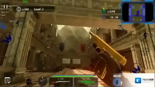 3、左手移动,右手开火,点击下方道具栏切换武器,右上角显示敌人位置。