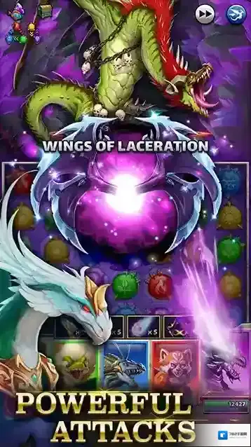 1、战斗阶段通过三消匹配相同颜色的方块,为对应英雄储能并触发攻击或辅助技能。每一轮消除都需预判后续走势,为即将到来的连击做准备。
