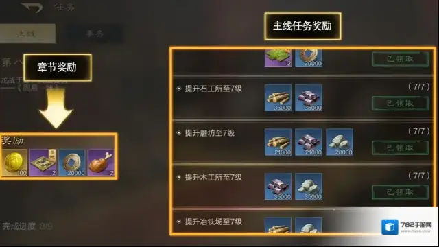 2、完成每个主线任务都会有奖励,做完章节全部任务还有章节奖励。