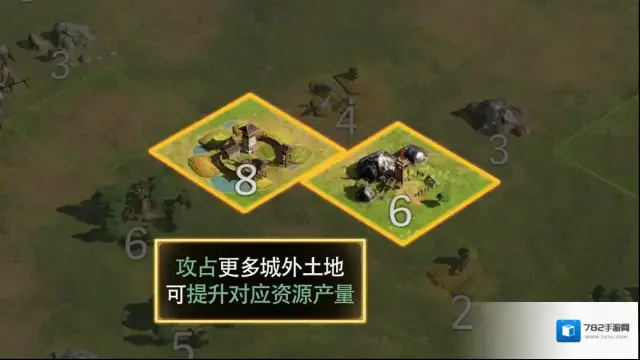 1、攻占土地:击败守军并占领土地后,即可获得对应资源产量。
