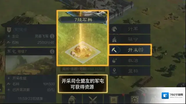 2、军屯:司仓使用天赋所建立的军屯,可以采收获取资源,盟内有司仓建立军屯后可以及时去开采。