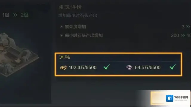 二、木材、石料、铁矿作用:建筑建造与升级、研究所科技升级、商店购买资源以及交易资源置换等都需要这三种资源的支持。