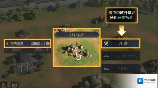 3、屯田:根据当前内城开垦地的等级与类型,获得相应的资源。