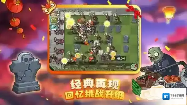 寻找克制植物战斗,无限阳光生产,大量丧尸不断攻击,卡通动画图片。