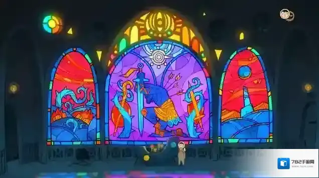 5、场景中有着非常多的小机关,这些都是解开谜题的关键,需要你细心的发现,例如这里站在壁画旁边等待,壁画就会逐渐上色。