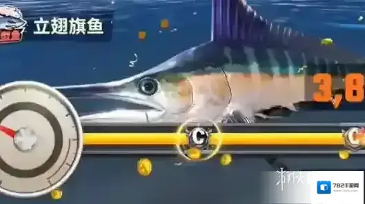 当你扔出鱼饵时,卷线轮上方会显示一个进度条和移动的光标。
