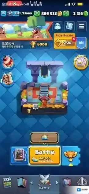 3、当通过新手教程后会获得8张新手卡牌,获得卡牌后先用这8张卡打到150杯,然后选一个哥布林牢笼,然后吧骑士换成这张建筑卡,然后去打2阶竞技场,稳扎稳扎稳打到450杯选择瓦基里武神就可以了。